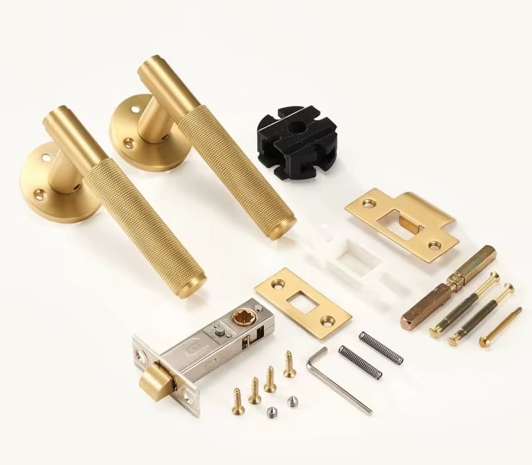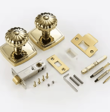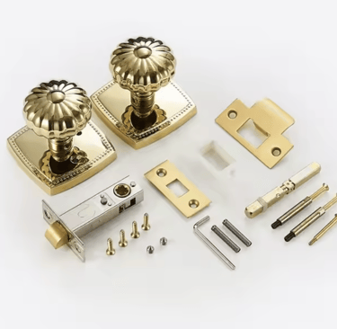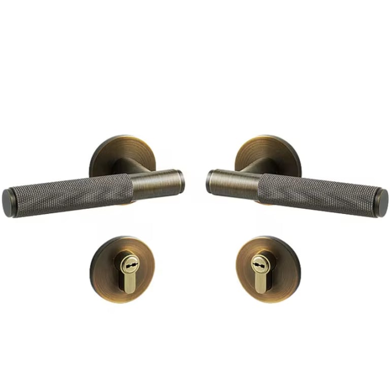 Name: Door Lock Handle Brass Knurled Design Golden