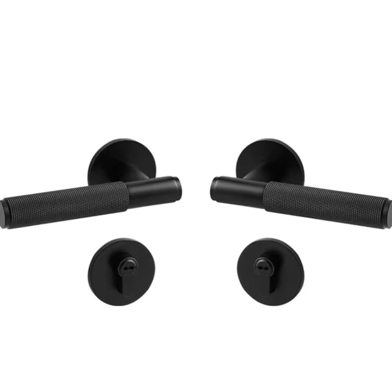 Name: Door Lock Handle Brass Knurled Design Black